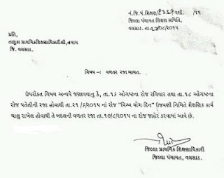 "VISHWA YOGA DIN" NA ROJ SHAIKSHNIK KARYA CHALU HOVATHI TE BADAL NI VALTAR RAJA (DT.17/08/2015) BABAT NO PARIPATRA-DPEO, VALSAD : DATE-14/08/2015